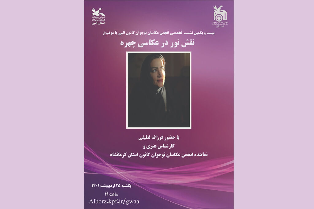 نقش نور در عکاسی موضوعی بود که در بیست و یکمین نشست تخصصی انجمن عکاسان نوجوان کانون البرز با حضور فرزانه لطیفی، کارشناس هنری و نماینده انجمن عکاسان کانون استان کرمانشاه بررسی شد.