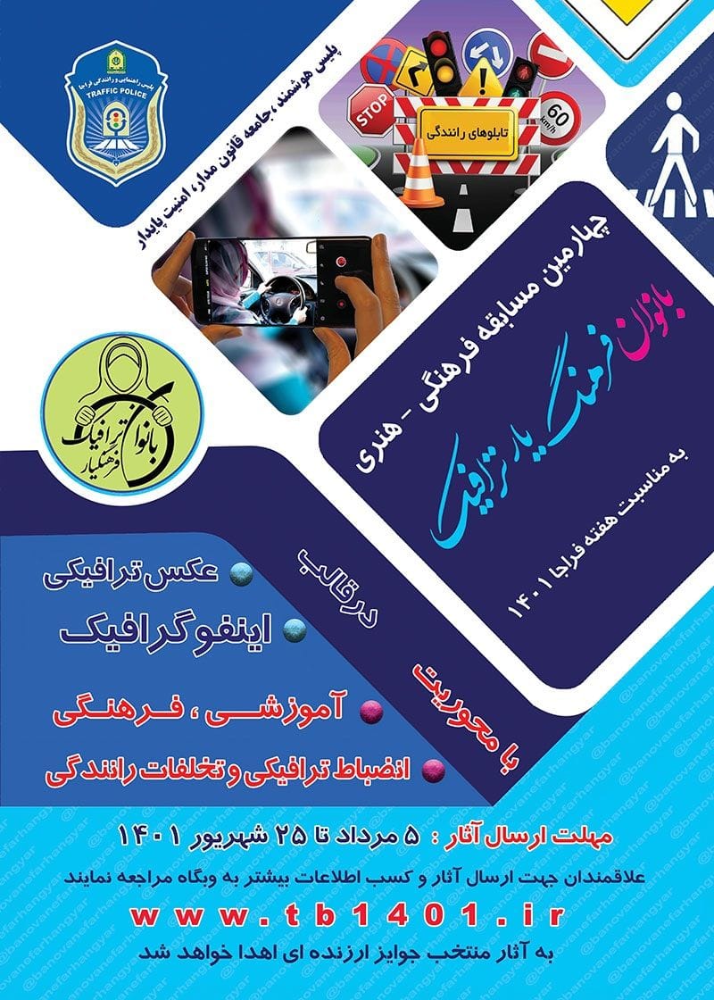 وی افزود: این مسابقه با محوريت انضباط ترافيکي و در 4 بخش عکس ترافیکی، اینفو گرافیک آموزشی، فرهنگی، انضباط ترافیکی، تخلفات رانندگی در هفته فراجای امسال خواهدشد.