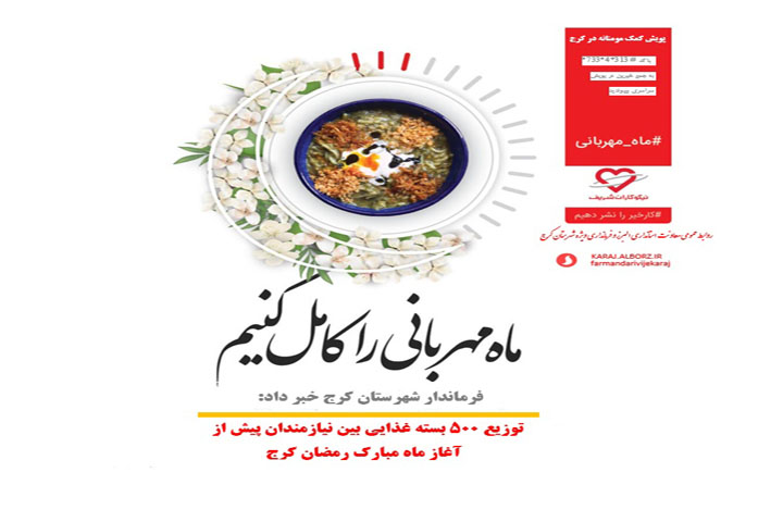 علاقهمندان برای کمک به مردم نیازمند شهرستان کرج میتوانند با کد #313*4*733* به جمع خیرین در پویش سراسری بپیوندند.