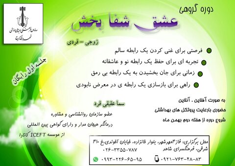 فرهنگسرای شاهد برای زوج های کرجی دوره مشاوره خانواده با عنوان عشق شفابخش برگزار می کند.
